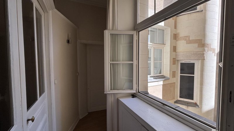NANTES- HYPER CENTRE VILLE, Place du Pilori, au pied des commerces et des transports, appartement T2 bis donnant au calme sur cour intérieure, comprenant une entrée desservant un séjour avec cheminée décorative, une grande cuisine séparée, aménagée et équipée d'une cuisinière combinée plaques/four, d'une hotte, d'un lave linge encastré et d'un lave vaisselle, une chambre avec rangement, une salle d'eau avec wc. Sans ascenseur.