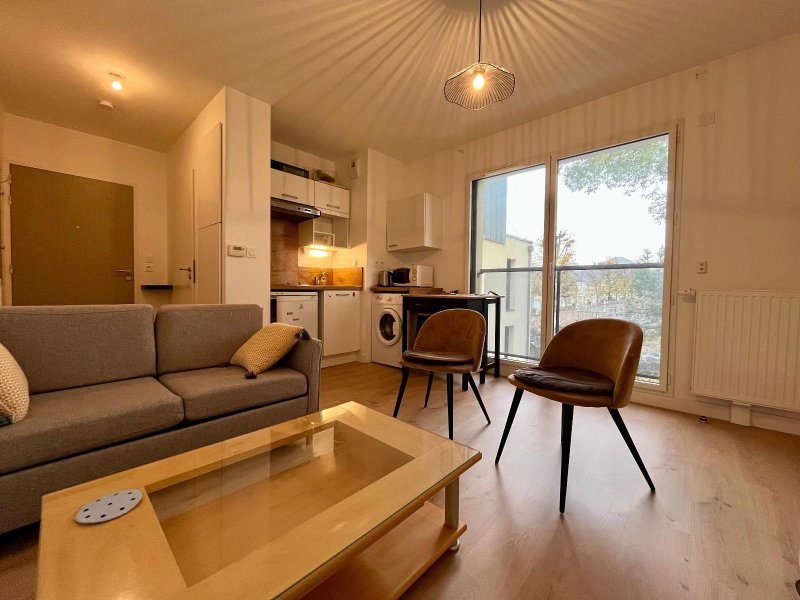 T2 MEUBLE - Quartier Monselet - Nantes Procé - Monselet - Proche place Anatole France, à proximité bus et tram 3, Centre Ville, ce T2 meublé de bon standing, de 32.09 m² en 2ème étage avec asc., donne sur l'arrière de l'immeuble, au calme et comprend : une entrée sur pièce de vie meublée, un coin cuisine aménagée et équipée, une chambre meublée, une salle d'eau avec wc, chauffage ind. au gaz, libre 10/12/2025.