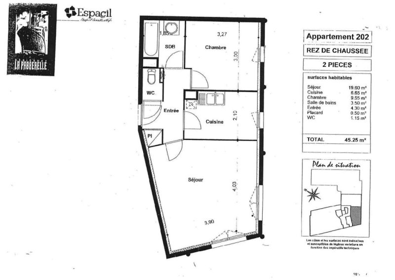 NANTES - QUARTIER GARE SUD, un appartement Type 2 comprenant : Une entrée avec placard, un séjour, une cuisine séparée aménagée et équipée, une chambre, une salle de bains, wc séparés. Une cave et Parking couvert.