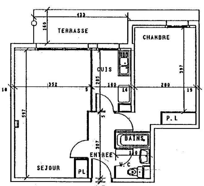 NANTES - QUARTIER DALBY/JARDIN DES PLANTES, appartement T2 comprenant une entrée avec placard, un séjour de 19.94 m² avec placard donnant sur terrasse de 8,5 m², une cuisine avec rangements, 1 chambre avec placard, une SDB avec wc. Parking extérieur.