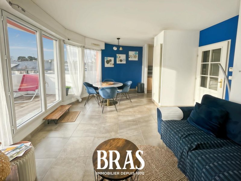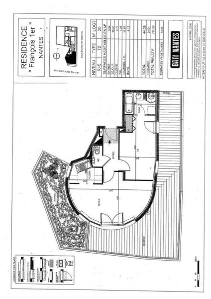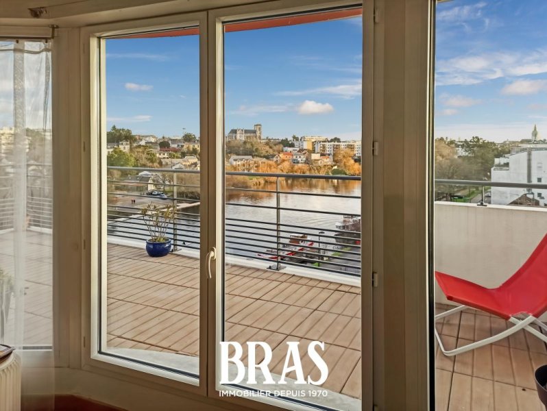 Un bel appartement lumineux MEUBLÉ de type 2 de 44,38m² et sa terrasse panoramique sur l'Erdre, dans une résidence calme de standing, au pied du chemin de halage et à deux pas des commodités (commerces, transports...) Situé au 5ème étage avec ascenseur offrant : une entrée, un séjour avec cuisine aménagée et équipée (plaques de cuisson, réfrigérateur, congélateur, lave vaisselle, four micro ondes, four d'appoint), donnant sur une spacieuse terrasse exposée Sud de 34m², une chambre sur parquet massif de 12,82 m² avec placard, une salle de bains attenante avec baignoire, machine à laver et meuble vasque, WC séparés avec lave mains.