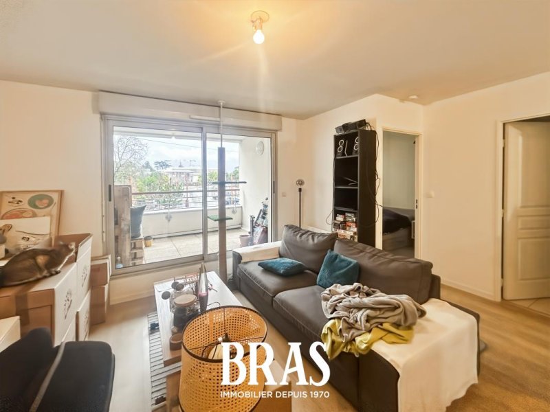 Dans une résidence calme, au pied des transports (chronobus ligne C6), appartement de type 2 de 39,64m² situé au 1er étage avec ascenseur et comprenant : une entrée avec placard, un séjour de 20,98m² avec cuisine aménagée et équipée (plaques de cuisson et réfrigérateur table-top), donnant sur une terrasse de 6,10m² exposée Est, une chambre de 9,43m² avec placard, une salle de bains avec baignoire et meuble vasque, WC séparés.