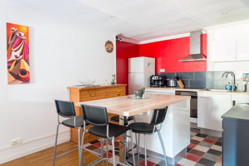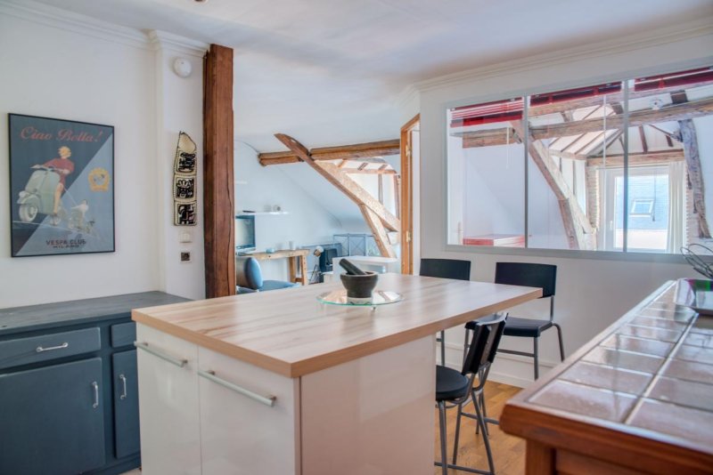 Nantes Centre, au coeur du triangle d'or, bel appartement meublé de charme de type 2, au 3ème étage d'un immeuble de caractère offrant un salon avec cuisine ouverte aménagée et équipée, une chambre, salle de bains avec WC et un dressing.