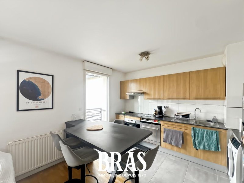 Rue Léon Maître - Dans une résidence de 2014, sécurisée, à proximité immédiate des commerces et transport en communs, appartement de type 2 de 51,41m² situé au 3ème étage avec ascenseur et comprenant : entrée avec placard, pièce de vie de 30,61m² avec cuisine aménagée et équipée (plaque de cuisson induction, hotte et four), donnant sur un balcon de 2,20m² exposé Est, une chambre de 11,36m², une salle de bains avec baignoire, meuble vasque et WC.