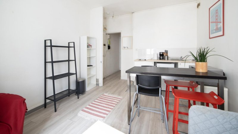 L'appartement s'ouvre sur une entrée qui mène à un séjour lumineux, idéalement agencé avec une cuisine ouverte, aménagée et équipée d'une plaque de cuisson. La chambre, spacieuse et calme, dispose d'une salle d'eau privative, tandis que des toilettes séparées viennent compléter l'ensemble.