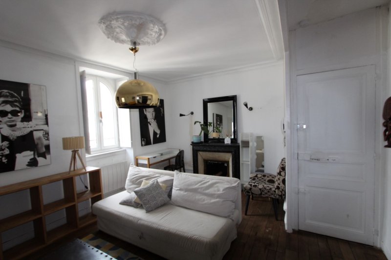 NANTES - HYPER CENTRE VILLE, appartement de type 2 meublé comprenant un salon avec placard, une cuisine aménagée et équipée de plaques, d'un mini-four, d'un four micro-ondes et d'un réfrigérateur congélateur, une chambre, une salle de bains avec wc. Debarras sur palier avec machine à laver.