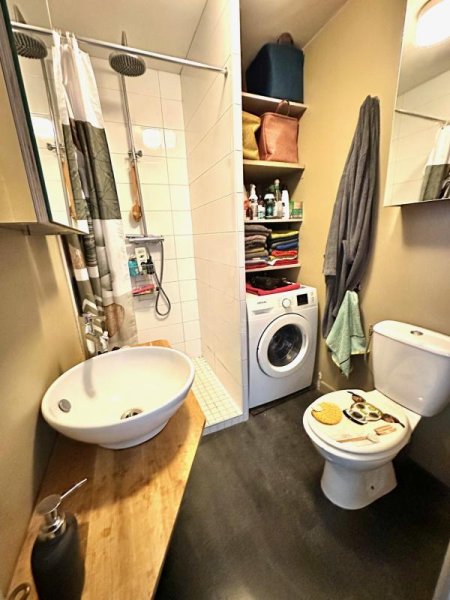 Il est composé d'une cuisine ouverte, aménagée et équipée (plaques gaz, hotte, four, frigo/congélateur), une salle d'eau avec wc et lave-linge, une chambre avec dressing et coin salon. Logement soumis à la Garantie des Loyers Impayés (GLI). "