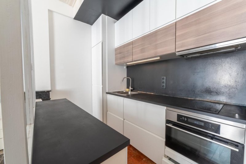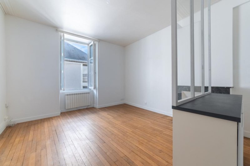 Au 2ème étage d'un immeuble de caractère, bel appartement de type 2 lumineux offrant : entrée, salon/séjour avec cuisine équipée ouvrant sur petit balcon, chambre et salle de bains avec WC.