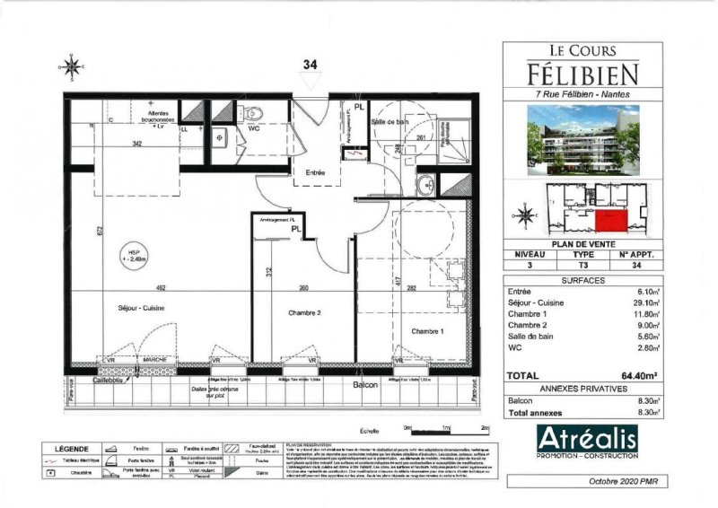 NANTES- QUARTIER VIARME/TALENSAC. Dans une résidence neuve, Type 3 comprenant: une entrée avec placard, un séjour donnant sur balcon de 8m² sur l'arrière au calme, une cuisine ouverte aménagée et équipée d'une hotte, de plaques et d'un four, deux chambres sur parquet dont une avec placard, une salle d'eau, wc séparés. Box. « Les informations sur les risques auxquels ce bien est exposé sont disponibles sur le site Géorisques : www.georisques.gouv.fr »