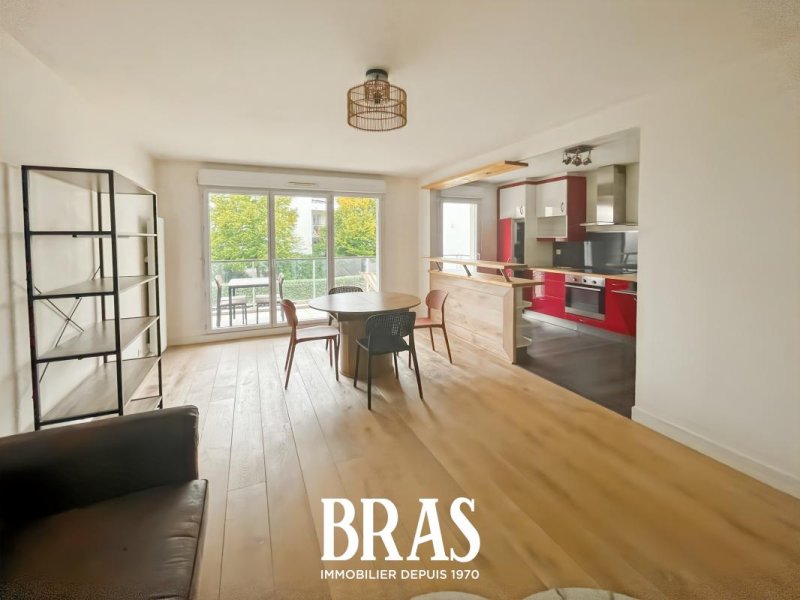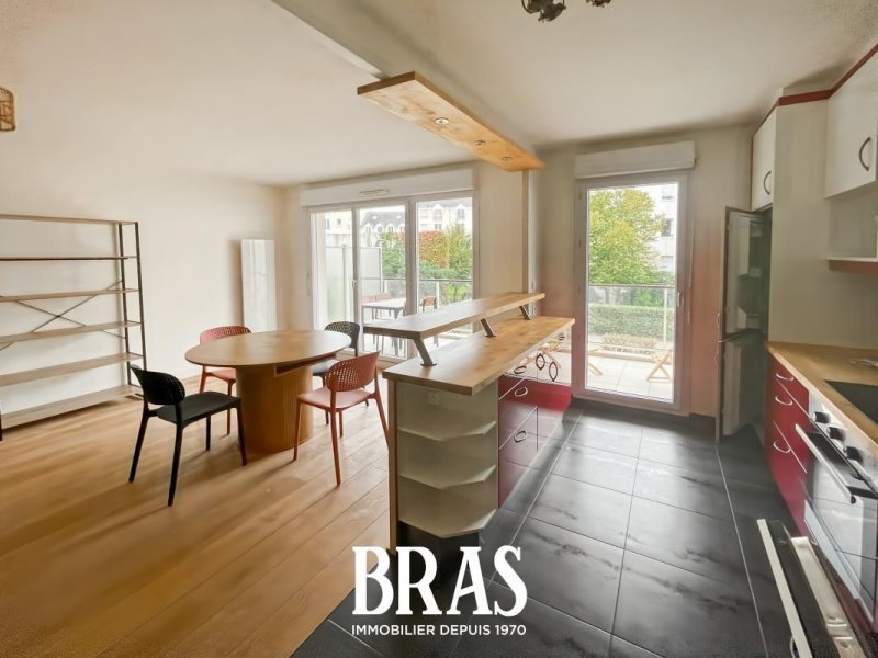 À proximité immédiate du CHU et des bords de Loire, appartement MEUBLÉ de type 3, situé au 1er étage avec ascenseur d'une résidence bien entretenue offrant : entrée avec placards, séjour avec terrasse au calme, cuisine ouverte aménagée et équipée (plaques de cuisson induction, hotte, four, réfrigérateur congélateur et lave vaisselle), 2 chambres, une salle de bains avec machine à laver, WC séparés.