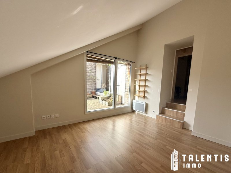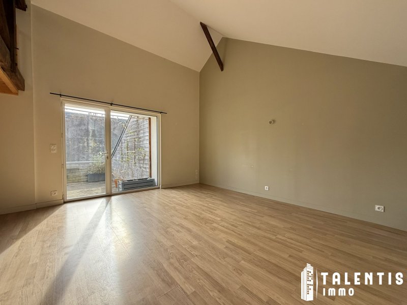 NANTES, HOTEL DIEU T3 (54m² 2ch) Terrasse Lumineux Dernier étage Au 2ème étage et dernier étage d'un immeuble, ce T3 non meublé allie charme et luminosité grâce à sa belle hauteur sous plafond. Il se compose d'une pièce de vie ouverte sur une grande terrasse, d'une cuisine aménagée avec coin cellier, d'une chambre au rez-de-chaussée avec accès direct à la terrasse, d'une salle d'eau avec emplacement lave-linge, ainsi que d'une mezzanine modulable en bureau ou coin nuit supplémentaire. Transport en commun à proximité : Bus : 26, 54, Navette Aéroport. Chronobus : C2 et C3. Tram : Ligne 1, 2 et 3. Chauffage individuel électrique. Loyer HC : 875.00 Charges mensuelles : 70.00 comprenant l'entretien des parties communes et la consommation d'eau froide (provision donnant lieu à une régularisation annuelle). Loyer CC : 945.00 Dépôt de garantie : 875.00 Honoraires de location à la charge du locataire : 651.48 TTC (dont 162.87 d'état des lieux inclus). Disponible mi-Novembre. Réf : LA2349. Honoraires de 651 TTC à la charge du locataire comprenant 163 TTC pour l'état des lieux. Loyer de base 875 /mois. Provision sur charges 70 /mois, régularisation annuelle. Dépôt de garantie 875 . Classe énergie D, Classe climat B Montant estimé des dépenses annuelles d'énergie pour un usage standard : entre 900.00 et 1250.00 sur les années 2021, 2022 et 2023 (abonnements compris). Les informations sur les risques auxquels ce bien est exposé sont disponibles sur le site Géorisques : georisques.gouv.fr. . Talentis, l'immobilier sur mesure.