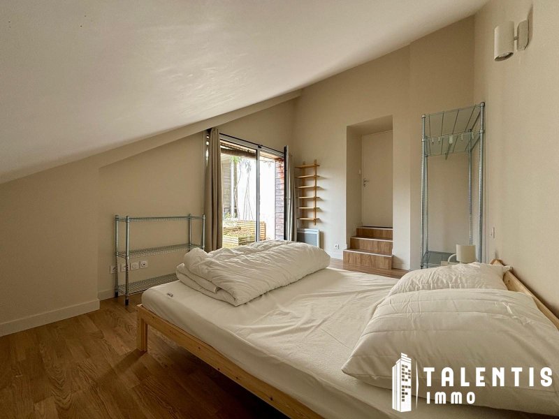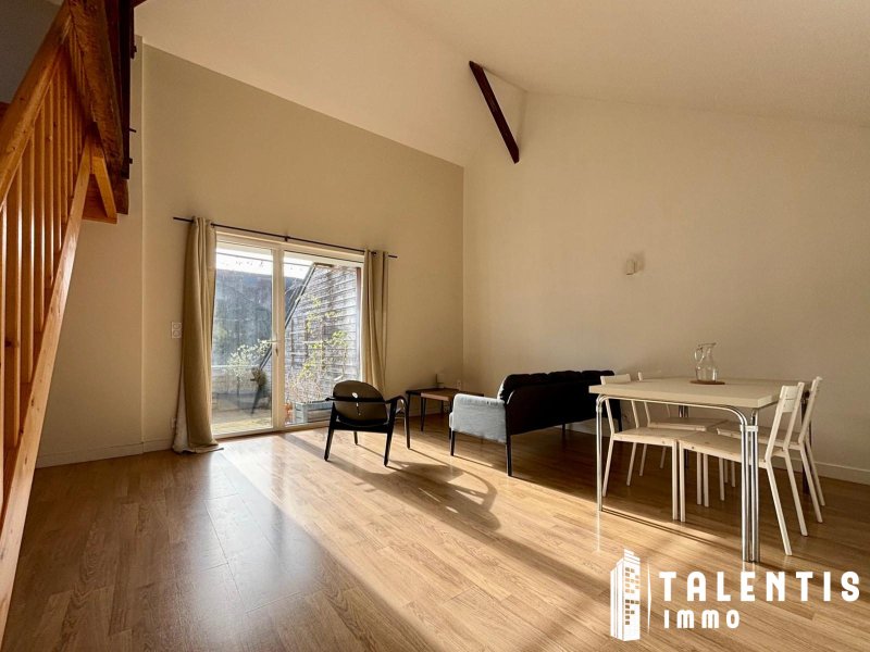 NANTES, HOTEL DIEU T3 (54m² 2ch) Dernier étage Terrasse Meublé Au 2ème étage et dernier étage d'un immeuble, ce T3 meublé allie charme et luminosité grâce à sa belle hauteur sous plafond. Il se compose d'une pièce de vie ouverte sur une grande terrasse, d'une cuisine aménagée avec coin cellier, d'une chambre au rez-de-chaussée avec accès direct à la terrasse, d'une salle d'eau avec emplacement lave-linge, ainsi que d'une mezzanine modulable en bureau ou coin nuit supplémentaire. Transport en commun à proximité : Bus : 26, 54, Navette Aéroport. Chronobus : C2 et C3. Tram : Ligne 1, 2 et 3. Chauffage individuel électrique. Loyer HC : 920.00 Charges mensuelles : 70.00 comprenant l'entretien des parties communes et la consommation d'eau froide (provision donnant lieu à une régularisation annuelle). Loyer CC : 990.00 Dépôt de garantie : 1840.00 Honoraires de location à la charge du locataire : 705.77 TTC (dont 162.87 d'état des lieux inclus). Disponible. Réf : LA2349. Honoraires de 706 TTC à la charge du locataire comprenant 163 TTC pour l'état des lieux. Loyer de base 920 /mois. Provision sur charges 70 /mois, régularisation annuelle. Dépôt de garantie 1 840 . Classe énergie D, Classe climat B Montant estimé des dépenses annuelles d'énergie pour un usage standard : entre 900.00 et 1250.00 sur les années 2021, 2022 et 2023 (abonnements compris). Les informations sur les risques auxquels ce bien est exposé sont disponibles sur le site Géorisques : georisques.gouv.fr. . Talentis, l'immobilier sur mesure.