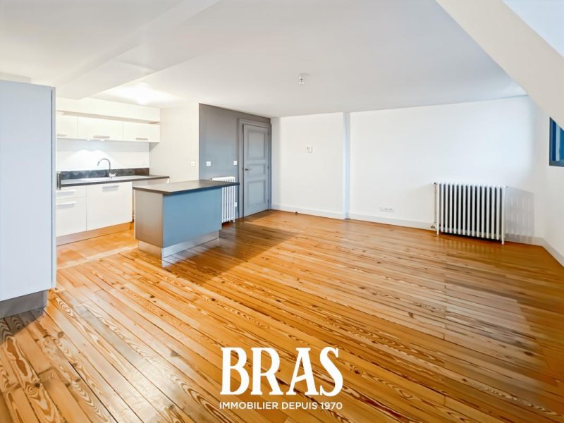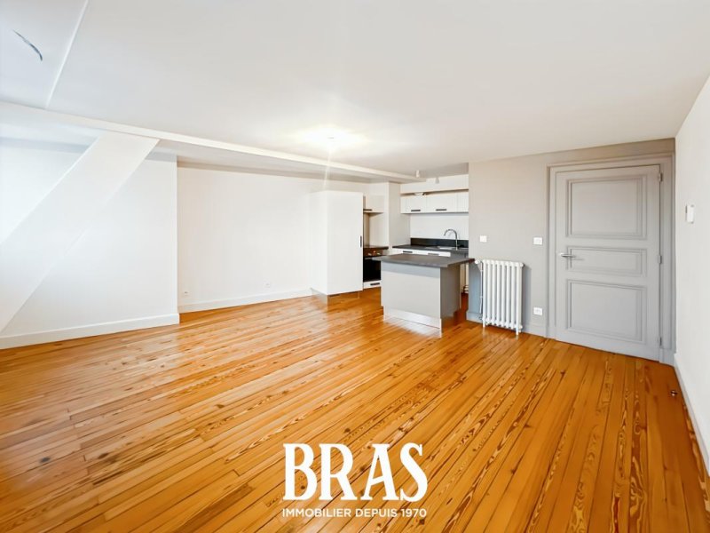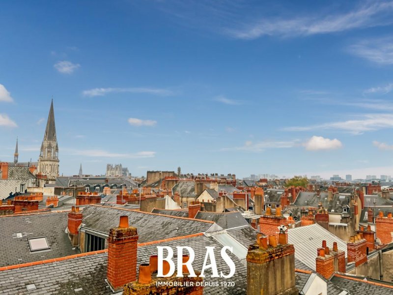 Rue de Santeuil - Au coeur d'un lieu des plus prestigieux de Nantes, appartement au calme de type 3 de 75m², situé au 4ème étage avec ascenseur offrant des prestations de grande qualité, dont : une entrée avec placard, séjour sur parquet de 25.60m² donnant sur une vue dégagée avec cuisine ouverte aménagée et équipée (table de cuisson vitrocéramique, four, nombreux meubles de rangement), 2 chambres de 13 m² et 22 m², salle d'eau avec douche et meuble vasque, WC séparés.