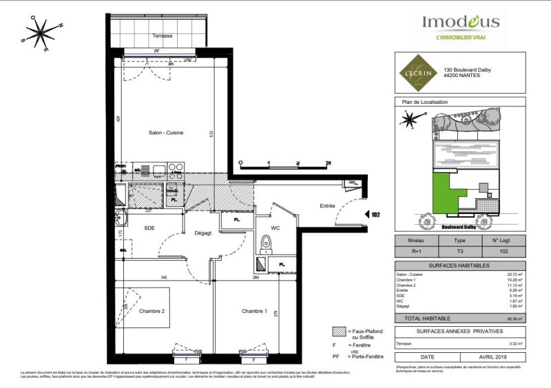 Nantes - Boulevard Dalby - Dans une résidence récente, ***CET APPARTEMENT VOUS INTÉRESSE ? RDV sur notre site guerlesquin-et-associes.com afin de DEPOSER VOTRE CANDIDATURE EN LIGNE !*** Appartement de type 3 au 1er étage (avec ascenseur) comprenant une entrée, un dégagement avec placard desservant un salon donnant sur le balcon, une cuisine ouverte aménagée et équipée, deux chambres dont une avec placard, une salle d'eau (douche) et des WC séparés. En annexe une place de parking en extérieur et sécurisée. Chauffage individuel au gaz. Logement sous dispositif fiscal PINEL et soumis à une assurance Garantie Loyer Impayé (conditions et plafonds de ressources à valider auprès du Cabinet). DPE : montant estimé des dépenses annuelles d'énergie entre 560 et 810 EUR (année de référence :2023) Les informations sur les risques auxquels ce bien est exposé sont disponibles sur le site Géorisques : www.georisques.gouv.fr Appartement disponible de suite et situé 130 boulevard Dalby à Nantes. Réference à nous communiquer : L210302
