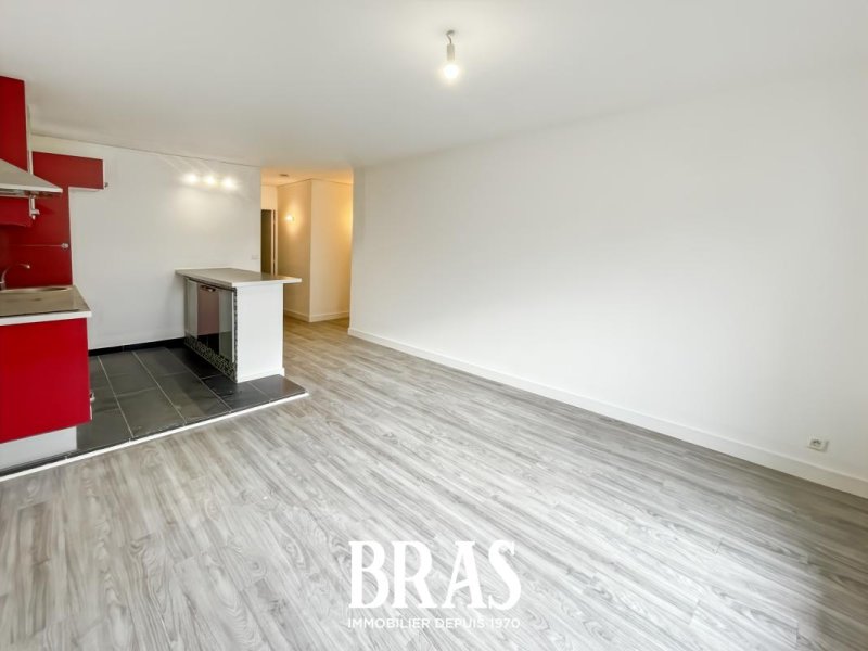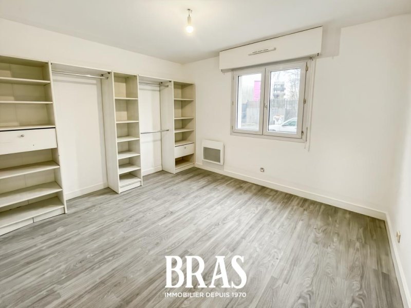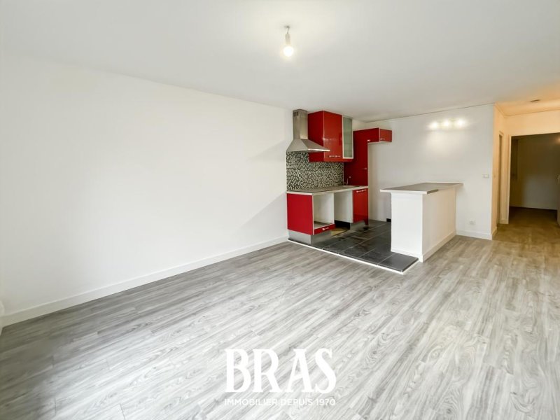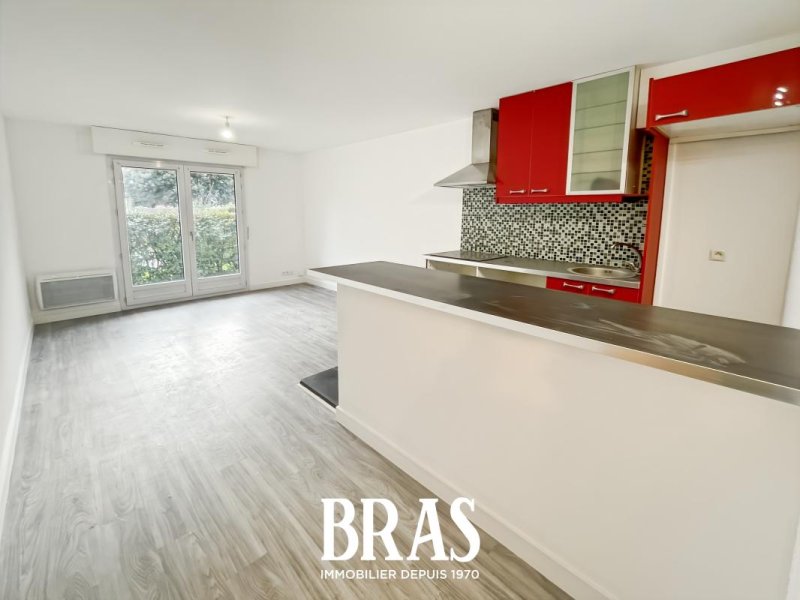 Avenue du Clipper - Appartement de type 3 de 50,14m² situé en rez-de-chaussée et comprenant : entrée, séjour de 22,46m² avec cuisine aménagée et équipée (four, hotte, plaques de cuisson), 2 chambres de 10,40m² et 9,03m² dont une avec placard et donnant sur une avancée balcon, salle d'eau avec douche, meuble vasque et WC.