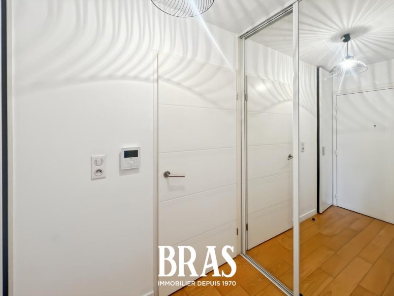 Au coeur du centre ville, dans une résidence de standing idéalement située au pied des transports et des commodités, bel appartement de type 3 de 77,46m² situé au 4ème étage et dernier avec ascenseur et comprenant : entrée avec placard, séjour de 42,17m² avec cuisine aménagée et équipée (plaques de cuisson et hotte), donnant sur un balcon de 13,10m², dégagement avec placard, 2 chambres de 13,22m² et 8,33m² dont une avec placard, une salle de bain avec baignoire, douche et meuble vasque, WC séparés.