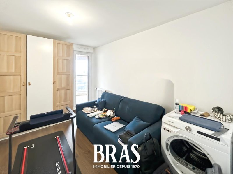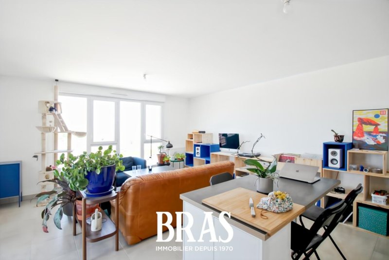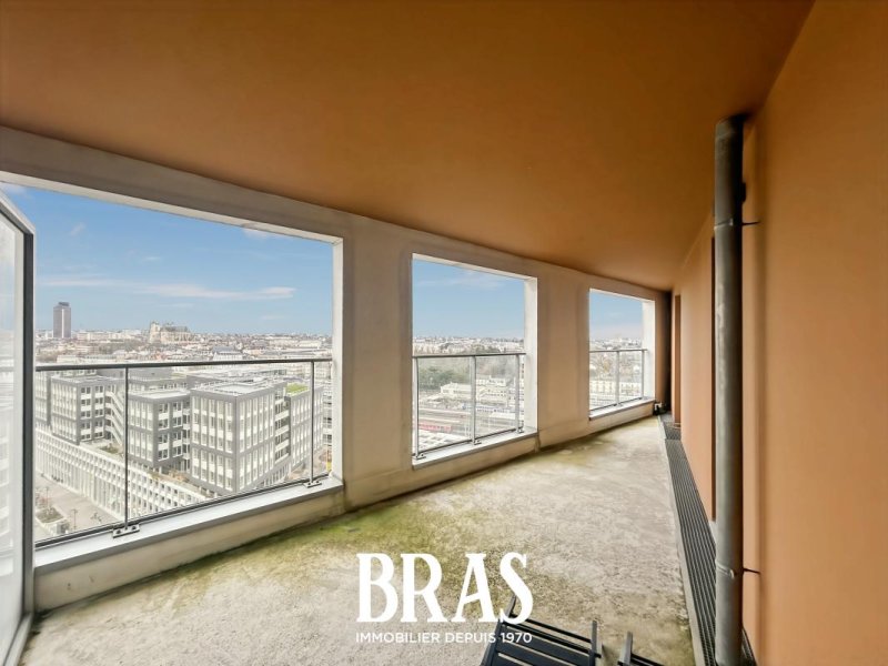 Dans une résidence récente, à proximité immédiate de la Gare de Nantes et des transports en communs (Chronobus 5 et C3), appartement de type 3 de 62,32m² situé au 16ème étage avec ascenseur et comprenant : une entrée avec placard, séjour de 27,75m² avec cuisine aménagée et équipée (plaque de cuisson et hotte) donnant sur une loggia de 15,85m² exposée Ouest, dégagement, 2 chambres de 12,28m² et 9,08m², une salle d'eau avec une douche et un meuble vasque, WC séparés.