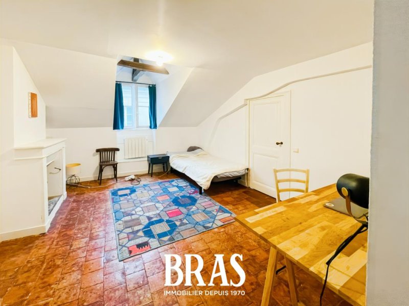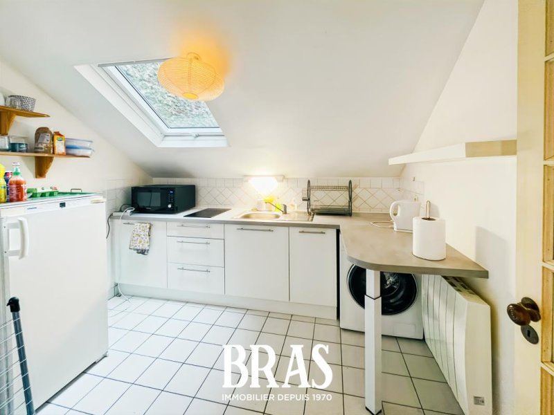 Rue Kervégan - Au coeur du centre ville, appartement de type 2 bis MEUBLÉ de 43,48 m² situé au 3ème et dernier étage sans ascenseur et comprenant : entrée avec placard, séjour de 13,67m², une cuisine séparée, aménagée et équipée (réfrigérateur, plaque vitrocéramiques 2 feux, mini-four, lave linge), 2 chambres, salle d'eau avec douche, meuble vasque et WC.