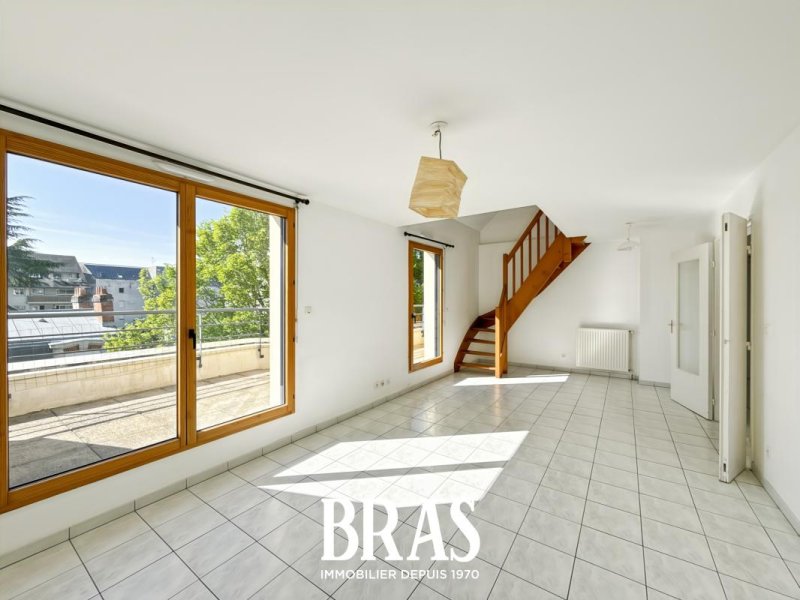 Avenue du Parc de Procé - Dans une résidence calme et sécurisée, à proximité immédiate des commerces et transports en communs (chronobus ligne C3), un appartement de type 3 DUPLEX de 79,41m² situé au 4ème et dernier étage et comprenant : entrée avec placard, séjour de 23,41m² donnant sur une terrasse, cuisine séparée, aménagée et équipée, dégagement, une chambre de 11,12m², salle d'eau avec douche et meuble vasque, WC séparés. À l'étage, une chambre de 13,84m² avec placard, salle de bains avec baignoire, meuble vasque et WC, accès à une seconde terrasse.