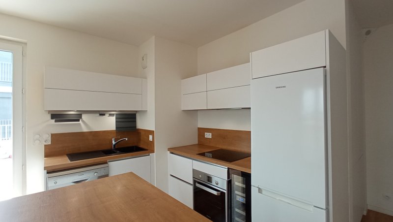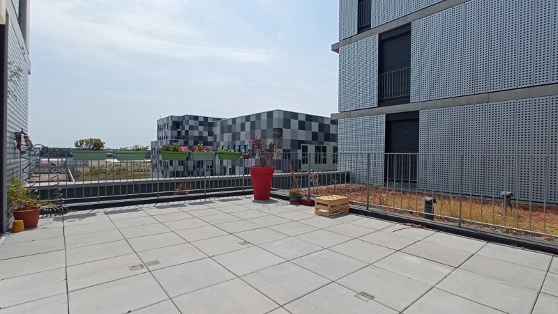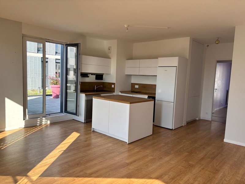 17 rue Léon Durocher, dans une copropriété contemporaine, magnifique T4 bien agencé, au dernier étage comprenant : entrée avec placard, cuisine ouverte aménagée (meubles hauts et bas, îlot centrale) et équipée (réfrigérateur, hotte, plaque, four, lave vaisselle, cave à vin), séjour donnant sur terrasse de 24 m² env., chambre parentale avec dressing, salle de bains avec WC équipée d'un lave linge et d'un sèche linge, dégagement avec rangement, 2 chambres dont une avec dressing, salle de douche et WC séparé. 1 Box en S.S. et 1 salle de sport. Quartier central et Culturel, Tram 1, Bus 5 et 26, commerces, écoles... Disponible de suite. Surface habitable : env. 80 m² .