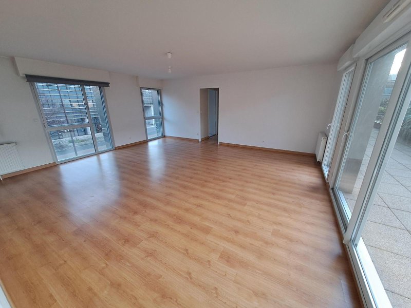 25 boulevard Vincent Gâche - Ile de Nantes - Appartement T4 lumineux et spacieux comprenant une entrée avec placard desservant une cuisine aménagée et équipée avec espace buanderie. Une pièce de vie traversante donnant sur une grande terrasse. Deux WC. Un couloir menant à 3 chambres dont deux avec placard, une salle de bains. Un garage double complète ce bien. Les charges comprennent : l'eau chaude, l'eau froide et le CHAUFFAGE. Libre de suite !.