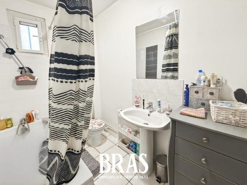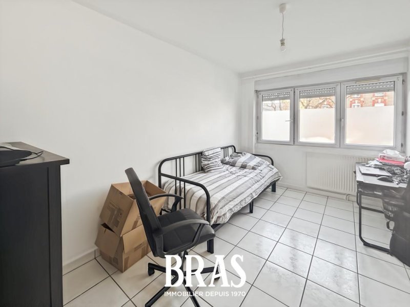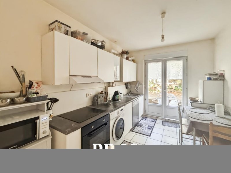 Dans une résidence calme, à proximité du tramway ligne 1, appartement de type 3 DUPLEX de 55,16m² (81,94m² au sol) situé au rez-de-chaussée et comprenant : entrée, pièce de vie de 11,72m², donnant sur cour avec jardinet, cuisine de 10,79m² séparée, aménagée et équipée (plaques de cuisson et hotte), 2 chambres de 10,58m² et 13,13m², un salon de 26,10m au sol (pouvant servir de 3ème chambre), salle de bains avec une baignoire, lavabo et WC.