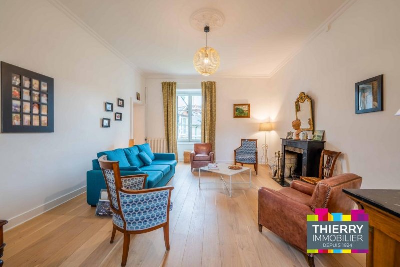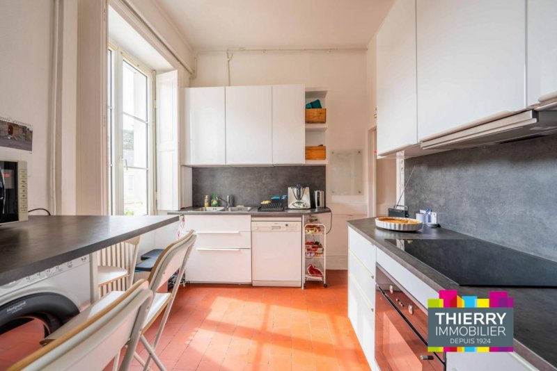 NANTES - CENTRE VILLE, dans un quartier recherché, agréable appartement Type 5 traversant et lumineux (Ouest/Est), donnant sur jardin, dans une rue calme. Il est composé d'une entrée, d'un salon avec cheminée décorative, d'une salle à manger, d'une cuisine aménagée et équipée (hotte, plaques induction, four, frigo/congélateur), une salle d'eau avec wc. L'espace nuit vous offre trois chambres, un point d'eau et des wc séparés, un dégagement avec placard. Le logement bénéficie également d'une cave. Logement soumis à la Garantie des Loyers Impayés (GLI). « Les informations sur les risques auxquels ce bien est exposé sont disponibles sur le site Géorisques : www.georisques.gouv.fr »