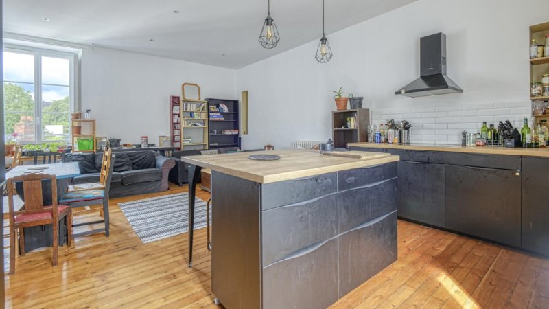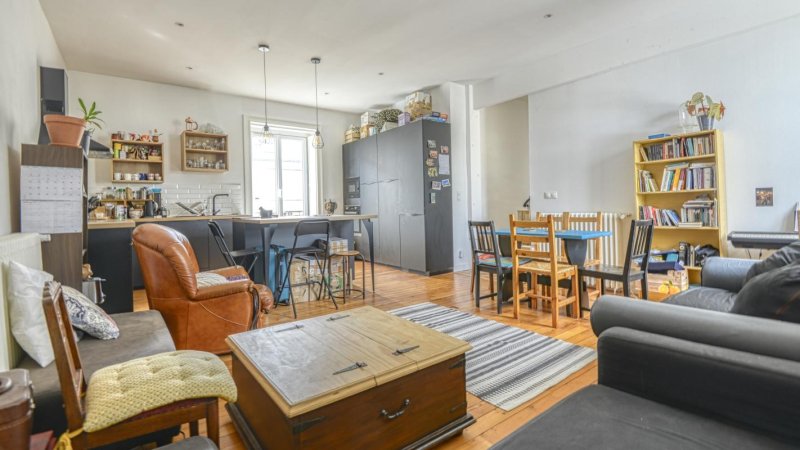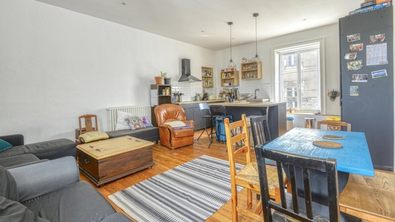 Nantes Centre-ville : au deuxième et avant dernier étage d'une petite copropriété de caractère, beau T5 entièrement rénové aux prestations soignées. Ce bien de qualité se compose d'une entrée avec placard, réception avec cuisine équipée ouverte (plaques, four, hotte, micro-ondes, réfrigérateur et lave vaisselle) quatre chambres avec placards, salle de bains, salle de douche et WC. Grenier, cellier et garage à vélos. Idéal colocation.