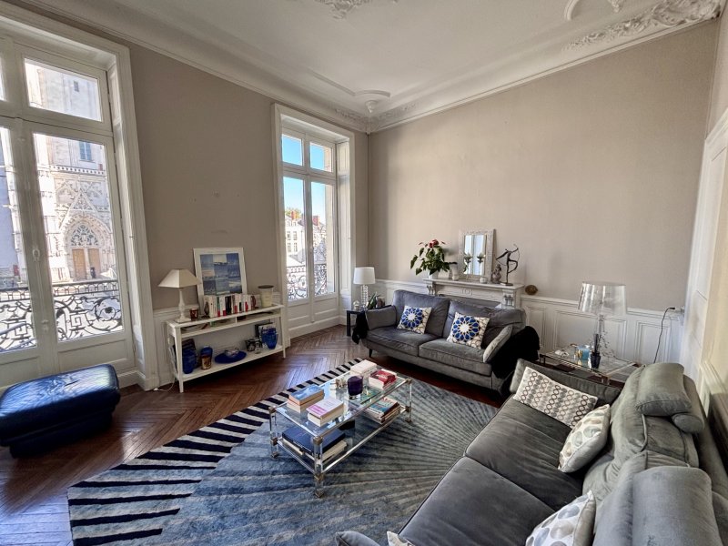 En plein coeur de Nantes - Place Saint-Pierre - Bel appartement T5 avec vue sur la cathédrale - ***CET APPARTEMENT VOUS INTÉRESSE ? RDV sur notre site guerlesquin-et-associes.com afin de DEPOSER VOTRE CANDIDATURE EN LIGNE !*** Au 2ème étage (avec ascenseur), vaste appartement ancien de plus de 150 m2, entièrement sur parquet et avec une magnifique vue sur la cathédrale. Un couloir avec multiples placards aménagés et rangements desservant: un salon avec cheminée, une salle à manger avec cheminée, une cuisine aménagée (bloc évier, hotte, plan de travail et placards de rangement), 3 chambres (dont une avec dressing), une salle de bains (baignoire) et des WC indépendants (avec lave-main). À proximité d'un parking accessible moyennant un abonnement auprès de la ville. Chauffage individuel gaz. Les informations sur les risques auxquels ce bien est exposé sont disponibles sur le site Géorisques : www.georisques.gouv.fr Ancien DPE : Montant estimé des dépenses annuelles d'énergie : environ 1 413EUR (année de référence :2006) > nouveau DPE en cours Logement disponible de suite et situé place Saint Pierre. Réference à nous communiquer : L151117