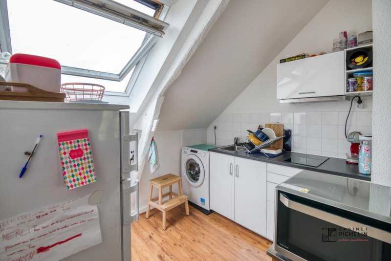 Au coeur du bourg et de ses commodités, au 2ème et dernier étage d'une petite copropriété de charme, beau T1 Bis offrant une pièce principale avec cuisine ouverte aménagée et équipée, et salle d'eau avec WC. Ensoleillé, belle hauteur sous plafond ! GLI EN PLACE
