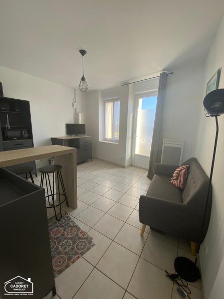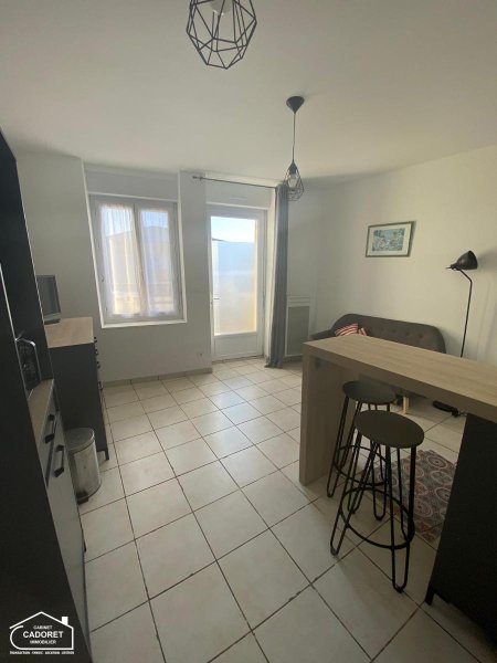 Location appartement meublé 28.50m² Paimboeuf - Le cabinet CADORET Immobilier vous propose : A Paimboeuf un appartement meublé traversant, en rez-de-chaussée, face au quai de Loire. Il comprend une entrée sur la pièce de vie avec un coin cuisine aménagée et équipée (plaques, four et réfrigérateur). Une chambre donnant accès à la salle d'eau avec WC. Place de parking privative. Cave. LOYER : 518.00€ + 10.00€ de charges de copropriété - DÉPÔT DE GARANTIE : 1036.00€ - HONORAIRES : 280.00€ dont 80.00€ d'état des lieux. LIBRE AU 15 MAI 2026.
