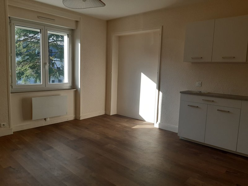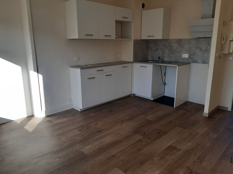 Au 1er étage, d'un immeuble plein centre, appartement offrant entrée, pièce de vie avec coin cuisine, deux chambres, salle d'eau/wc. Une cave en sous-sol