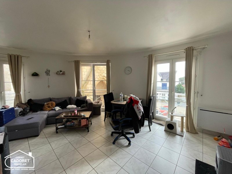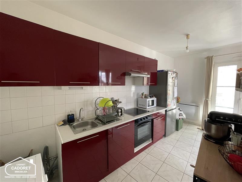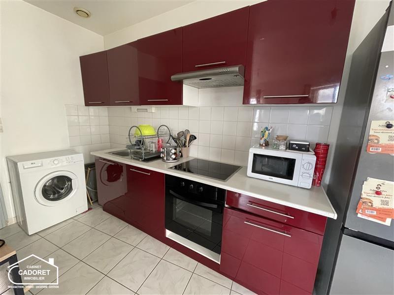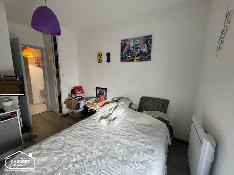 Appartement T2 - PORNIC - Le Cabinet CADORET vous propose la location d'un appartement T2 meublé, il comporte une entrée avec placard desservant salle de bain, WC séparés, salon séjour avec cuisine ouverte aménagée et équipée (four hotte et plaques) avec accès cellier, et une chambre avec placards.