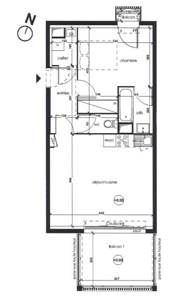 REZÉ - Dans résidence BBC, un appartement type 2 comprenant : Une entrée, un cellier, un séjour donnant sur un balcon de 9m², une cuisine ouverte aménagée et équipée de plaques et d'une hotte, une chambre avec une salle d'eau attenante, WC séparés.