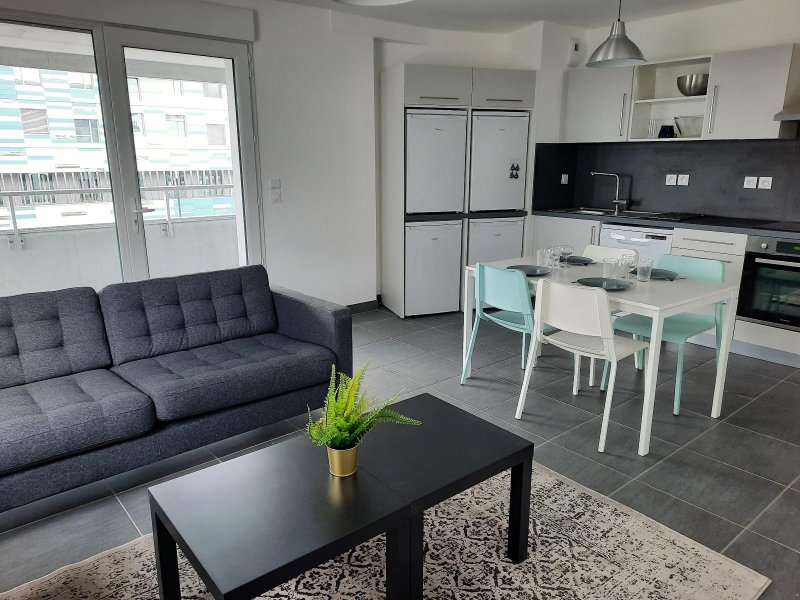 « @coloc est un concept de coliving et de colocation clef en mains, destiné aux jeunes actifs et aux étudiants, présent sur les villes de Nantes et de Rennes. Ici, vous bénéficiez d'un appartement T5 d'une superficie de 90m² qui comprend 4 chambres de superficie égale. L'appartement est neuf, entièrement équipé, adapté à la colocation, au sein d'une résidence récente (2021) et sécurisée.