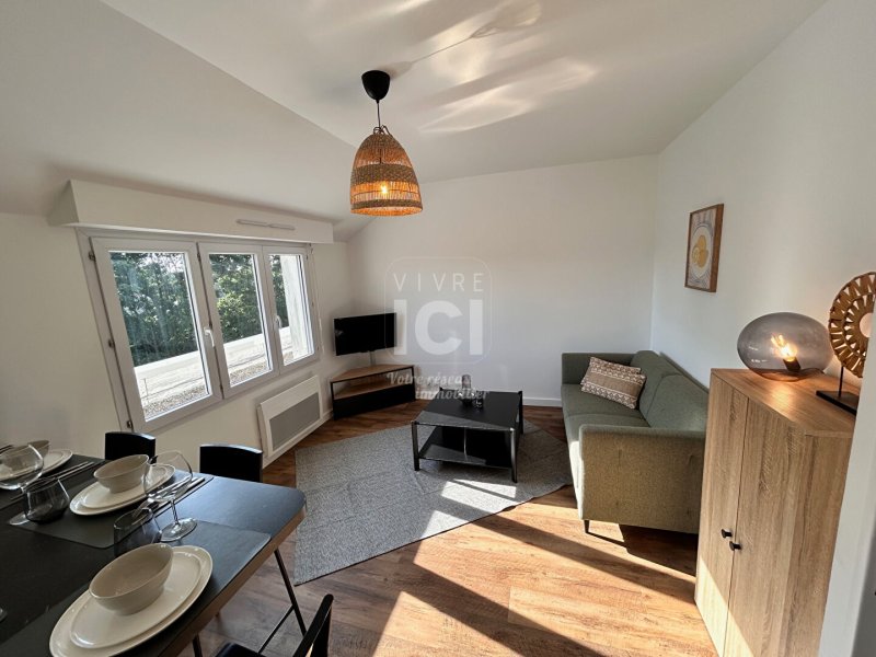 A louer, à SAINT-HERBLAIN, proche polyclinique, entre le parc de la Chézine et le Tillay, dans une résidence sécurisée avec un environnement verdoyant, un appartement de type 2 de 37 m², au 3ème et dernier étage, entièrement meublé, er rénové en 2024, T2 comprenant une entrée avec placard, un séjour salon avec cuisine aménagée et équipée (plaque induction, four, réfrigérateur avec congélateur, hotte et machine à laver), une salle de d'eau avec wc, et une chambre avec placard.