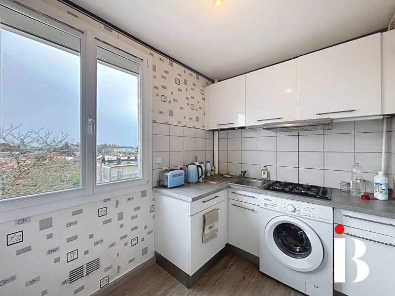 Situé au 4ème étage avec ascenseur, appartement comprenant une entrée, une cuisine aménagée (plaques et nombreux rangements), un séjour, une chambre séparée, une salle d'eau avec WC. Une cave et un parking sont à disposition.