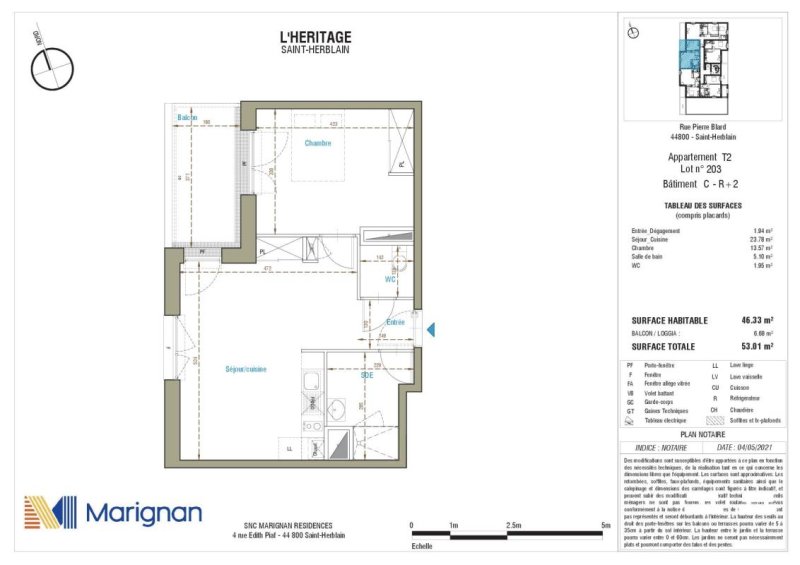SAINT HERBLAIN. Dans une résidence récente, un appartement Type 2 comprenant : une entrée, un séjour donnant sur un balcon, une cuisine ouverte aménagée et équipée (plaques et hotte), une chambre donnant sur le balcon, une salle, wc séparés. Parking. Conditions de ressources Loi Pinel. « Les informations sur les risques auxquels ce bien est exposé sont disponibles sur le site Géorisques : www.georisques.gouv.fr »