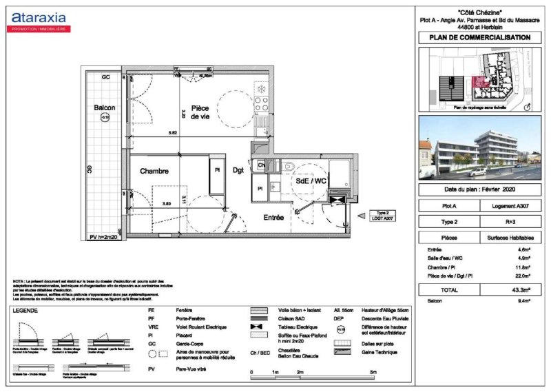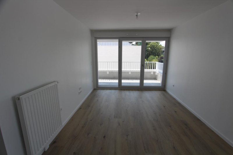 SAINT HERBLAIN. Dans une résidence récente, un appartement T2 comprenant une entrée avec placard, un séjour donnant sur un balcon de 9.40 m², une cuisine ouverte aménagée et équipée (plaque 2 feux + hotte), une chambre avec placard, une salle d'eau avec wc. Parking Couvert.
