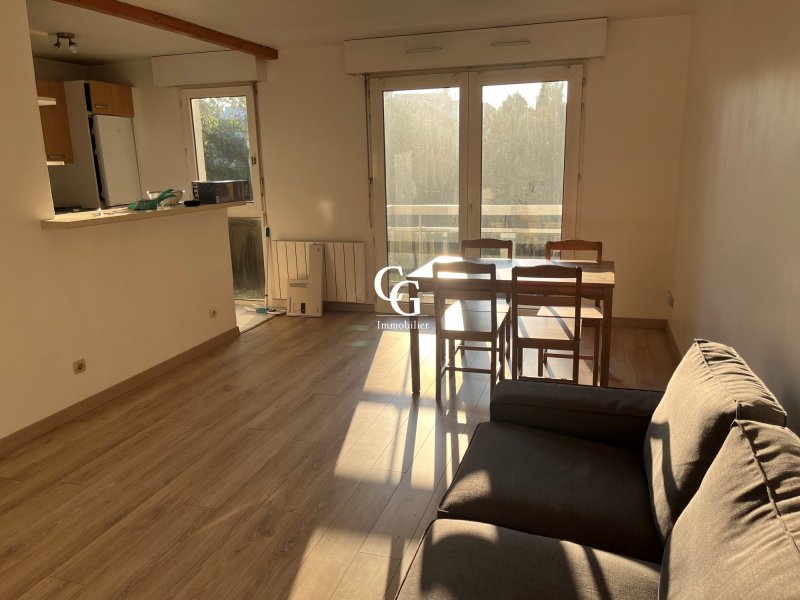 SAINT-HERBLAIN parc de la Chézine, impasse des Landes Notre-Dame. Le Cabinet Guémené vous présente à la location un agréable appartement T3 meublé de 60 m² au 1er étage sans ascenseur dans une résidence verdoyante et calme. L'appartement comprend une entrée, une pièce de vie donnant sur un balcon avec coin cuisine aménagé et équipé (plaque de cuisson, hotte, mini-four, réfrigérateur, congélateur, machine à laver), deux chambres avec placard, un débarras, une salle de bains, et un WC séparé. Annexes : un garage. Chauffage et production d'eau chaude individuels électriques. Les charges comprennent l'eau froide, l'entretien des parties communes et la taxe d'ordures ménagères. CONDITIONS DE RESSOURCES : bien soumis à la Garantie Loyers Impayés (étudiants avec garants OU CDI avec revenus équivalents à trois fois le loyer) Libre le 24 mars 2026. Honoraires de 780 TTC à la charge du locataire comprenant 180 TTC pour l'état des lieux. Loyer de base 835 /mois. Provision sur charges 60 /mois, régularisation annuelle. Dépôt de garantie 835 . Classe énergie C, Classe climat B Montant estimé des dépenses annuelles d'énergie pour un usage standard : entre 980.00 et 1370.00 sur les années 2021, 2022 et 2023 (abonnements compris). Les informations sur les risques auxquels ce bien est exposé sont disponibles sur le site Géorisques : georisques.gouv.fr.
