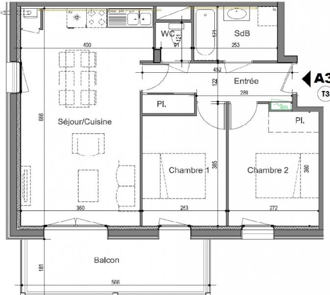 A LOUER - SAINT-HERBLAIN - 3 PIECES - Dans un cadre verdoyant, à proximité de la salle de spectacles "La Carrière", d'Atlantis, et du périphérique porte de St Herblain. Un T3 de 56.23m² situé au 3ème étage sans ascenseur, comprenant : une entrée avec un placard, un séjour/cuisine, une salle de bain, WC séparés, deux chambres. Le logement dispose d'une place de parking, d'un local vélo et d'un grand balcon de 10 m².