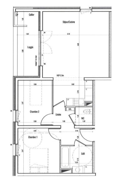 arrêt Marcel Paul et du périphérique, appartement T3 de 64.70m² comprenant une entrée, un séjour donnant sur une loggia de 6.2 m², une cuisine ouverte aménagée équipée de plaques vitrocéramiques 4 feux et d'une hotte, deux chambres, une salle de bain, un wc ainsi qu'un cellier de 1.7m². Le logement bénéficie d'une place de parking couvert. Eau chaude, eau froide et chauffage compris dans la provision sur charges.