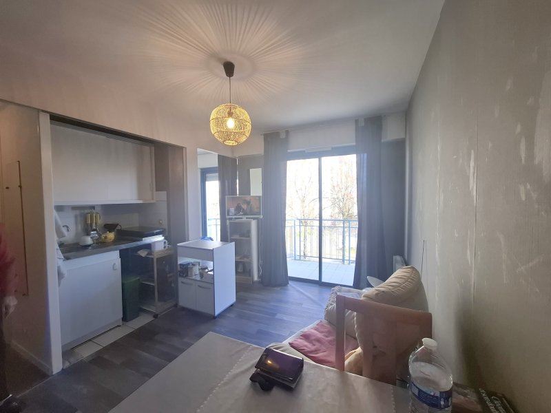Appartement T1 bis situé au 2ème étage d'une résidence sécurisée. Il se compose d'une pièce de vie avec coin cuisine aménagée (plaques à induction), d'un espace nuit avec placard, d'une salle d'eau avec WC ainsi que d'un débarras sur le palier. Terrasse. Chauffage électrique. Une place de parking est incluse. Proche de toutes commodités. Loyer : 360 EUR + 40 EUR de charges Dépôt de garantie : 360 EUR Honoraires de location : 257 EUR (dont 70,20 EUR pour l'état des lieux) Contact : Céline Peltier 06 23 84 27 49.