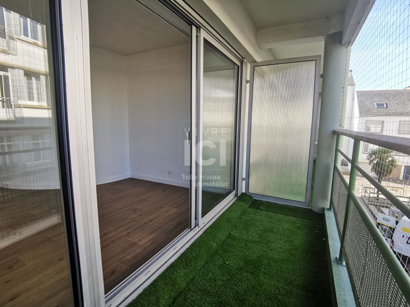 A louer, à SAINT NAZAIRE, en hyper centre ville, au pied du PAQUEBOT, des commerces, de l'école d'ingénieur, des transports, un appartement studio refait à neuf, au 2emè étage d'une résidence sécurisée et avec ascenseur, comprenant une entrée avec placard, une cuisine américaine aménagée équipée (plaque induction, réfrigérateur et machine à laver) ouverte sur le séjour, donnant accès au balcon, et une salle d'eau avec wc.