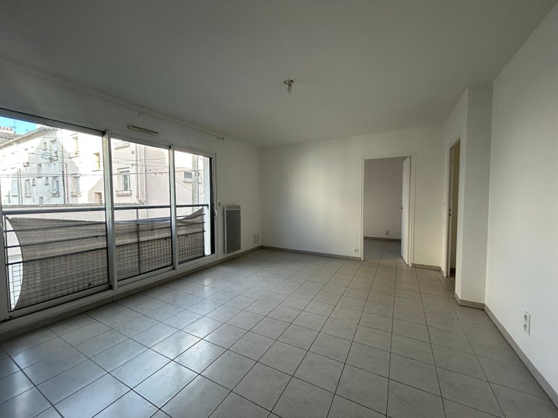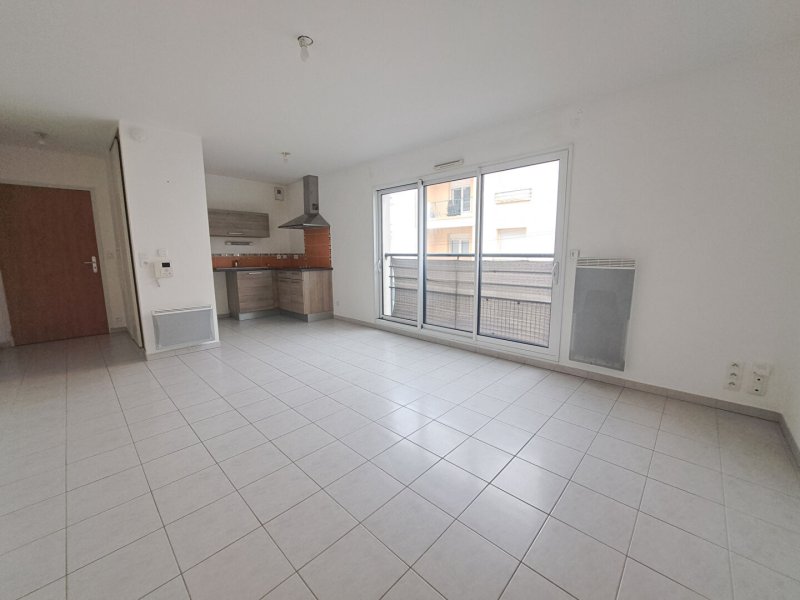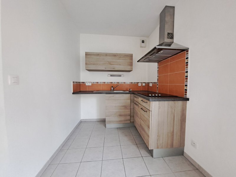 une entrée avec placard, un séjour/salon lumineux exposé OUEST, une cuisine aménagée (plaque, hotte), deux chambres, une salle de bains et un WC séparé.