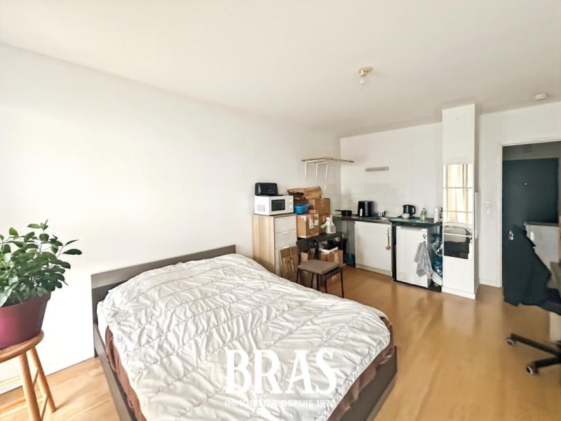 Appartement de type 1 de 24,44m² situé au 2ème étage avec ascenseur : entrée avec placard, pièce principale de 15,85m² avec cuisine aménagée et équipée (plaque de cuisson et réfrigérateur table-top), donnant sur un balcon de 12,20m², salle d'eau avec douche et lavabo, WC séparés.