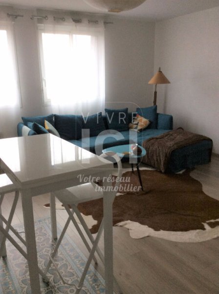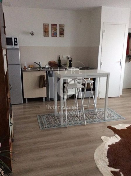 En plein coeur du bourg de Sainte Luce sur Loire, appartement de type 2 de 46,67 m² au 1er étage sans ascenseur comprenant une pièce de vie avec un coin cuisine, une chambre, un dressing, une salle d'eau, un wc.