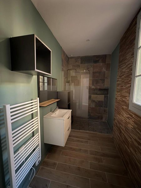 Appartement rénové de type 3 d'une superficie de 67m² comprenant : un séjour avec cuisine aménagée, deux chambres, un local rangement, une salle d'eau avec WC séparé.