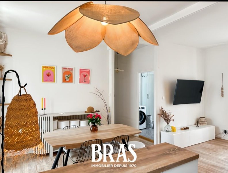 Très bel appartement deux pièces meublé d'une surface de 51.46m² situé au 1er étage sans ascenseur et comprenant: entrée, grand séjour (31m²) avec espace cuisine aménagé et équipé (réfrigérateur, plaques de cuisson, hottes aspirante, four encastré, four à micro-ondes et lave-vaisselle), 1 chambre de 11.49 m², une salle d'eau avec douche et des w.c séparés.