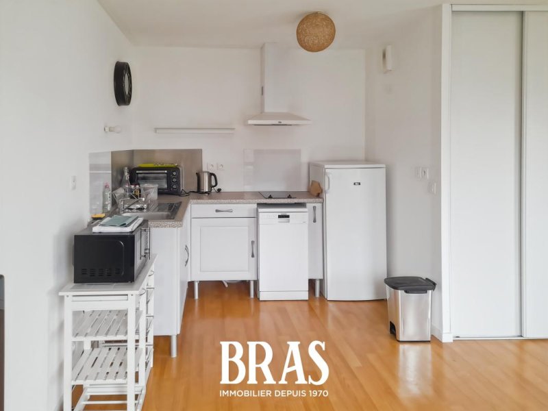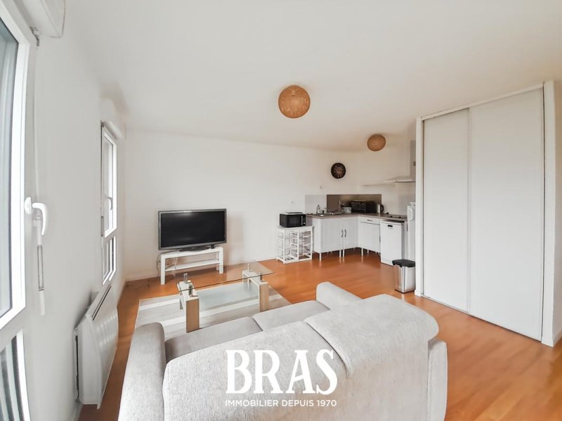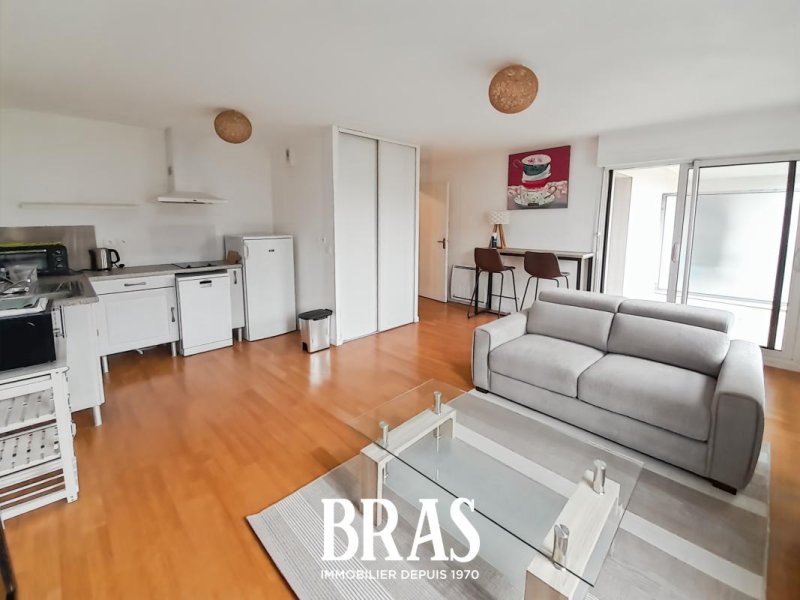 Appartement 2 pièces meublé situé au 2 ème étage avec ascenseur. Comprenant une entrée avec placard desservant un séjour avec coin cuisine aménagé et équipé (plaques de cuisson, lave vaisselle, réfrigérateur, hotte aspirante, lave-vaisselle, four, four à micro-ondes) de 22 m², une chambre (10 m²) avec placard donnant sur un balcon de plus de 5 m², une salle de bains et W.C séparés.